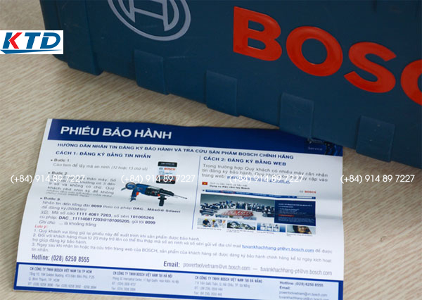 Phiếu bảo hành của máy khoan cầm tay Bosch chính hãng phải có các khoản mục rõ ràng như cách thức, điều kiện, thời gian và địa chỉ trung tâm bảo hành khi người tiêu dùng cần. Sản phẩm mà bạn định mua không có phiếu bảo hành hoặc phiếu bảo hành bị rách, mờ nhạt thì nên xem xét lại, rất có thể là máy khoan Bosch nhái.