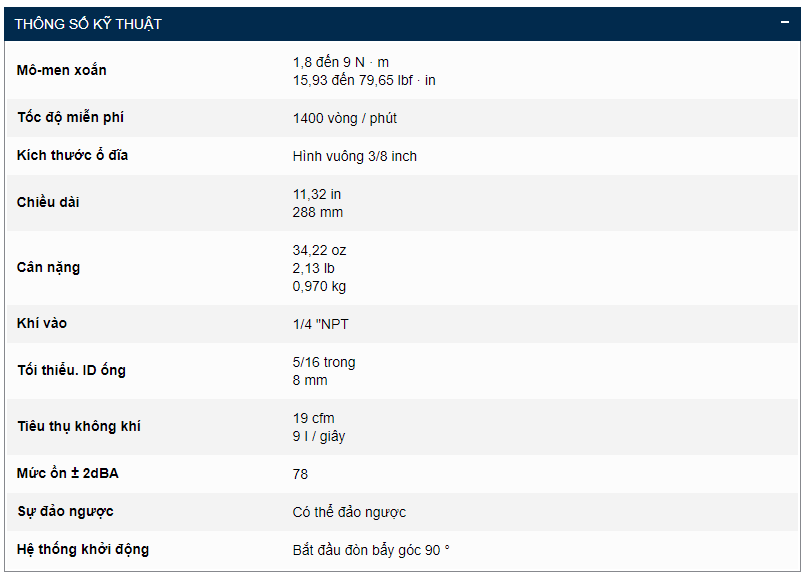 - Dải mô-men xoắn 1,8 đến 9 lbf.in (15,93 đến 79,65 Nm)