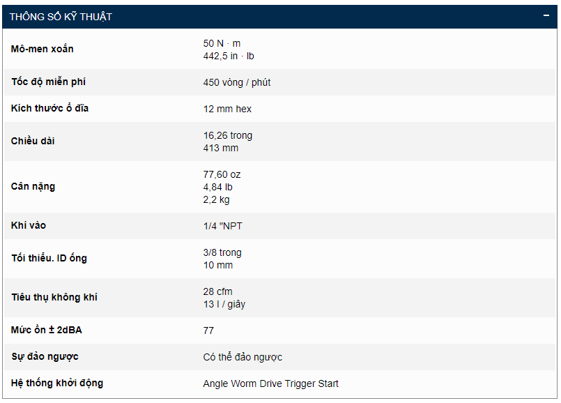 Tua vít khí nén FIAM cung cấp khả năng vận hành đơn giản và linh hoạt cho các ứng dụng đặc biệt nặng mà không gian bị hạn chế. Tỷ lệ trọng lượng / công suất cao đảm bảo hiệu suất tối đa. Thiết kế tiện dụng được tối ưu hóa đảm bảo sự thoải mái cho người vận hành, trong khi các bộ phận mạnh mẽ mang lại tuổi thọ dụng cụ lâu dài. Công cụ có thể đảo ngược hoàn toàn và cung cấp đầy đủ mô-men xoắn để siết và tháo ốc vít. Động cơ không dầu yêu cầu ít bôi trơn hơn so với tua vít tiêu chuẩn trong quá trình hoạt động.
