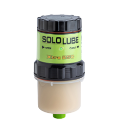 Sololube có động cơ truyền động mạnh mẽ, rất chính xác, được cung cấp điện áp bằng pin 6 V Li dung lượng cao hoặc dùng nguồn điện 24 V. Hộp bôi trơn – tùy chọn với hàm lượng 60, 150 hoặc 250 ml – được vặn đơn giản vào bộ truyền động.