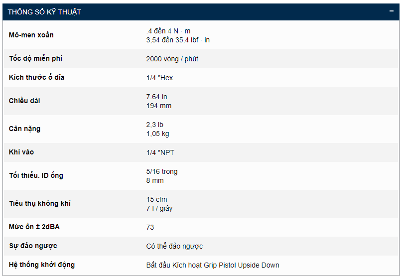 Máy cấp vít khí nén tự động dạng súng cầm tay FIAM 26C...APU được biết đến với độ tin cậy và khả năng lặp lại vô song - hết chu kỳ này đến chu kỳ khác. Hệ thống kiểm soát mô-men xoắn TRACS cải tiến đảm bảo các hoạt động buộc chính xác trên các khớp cứng và khớp mềm. Tỷ lệ công suất trên trọng lượng cao đảm bảo hiệu suất tối ưu. Thiết kế công thái học được tối ưu hóa đảm bảo sự thoải mái cho người vận hành. Công cụ có thể đảo ngược hoàn toàn mang lại mô-men xoắn đầy đủ cho các hoạt động thắt chặt cũng như tháo dây buộc. Động cơ ít dầu cần ít dầu bôi trơn hơn tua vít tiêu chuẩn trong quá trình hoạt động. Cấu hình lộn ngược 'Up Grip' độc quyền của FIAM được thiết kế để cho phép tiếp cận âm thanh dễ dàng, công thái học vào các không gian làm việc mà tua vít kiểu súng lục truyền thống không thể tiếp cận được.