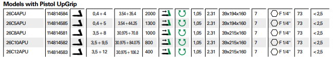 Máy cấp vít khí nén tự động dạng súng cầm tay FIAM 26C...APU | Dụng cụ cầm tay FIAM 26C...APU gồm các model: