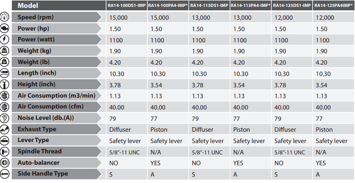 • Các vật tư phụ khuyến nghị: Đĩa mài, đĩa lật và đĩa chà nhám.