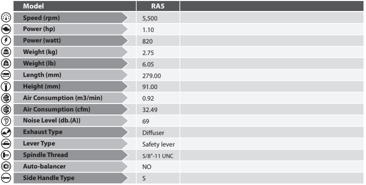 • Tốc độ thấp phù hợp với nhiều ứng dụng chà nhám