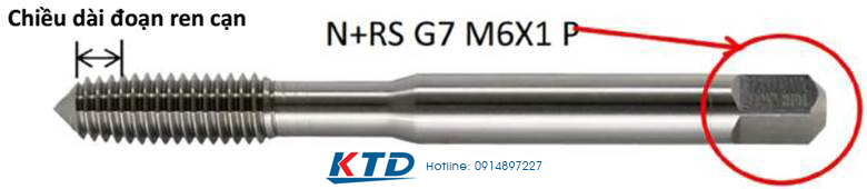 P: Mũi taro bán tinh dùng cho ép ren lỗ thông, chiều dài 4 ren khởi tạo.